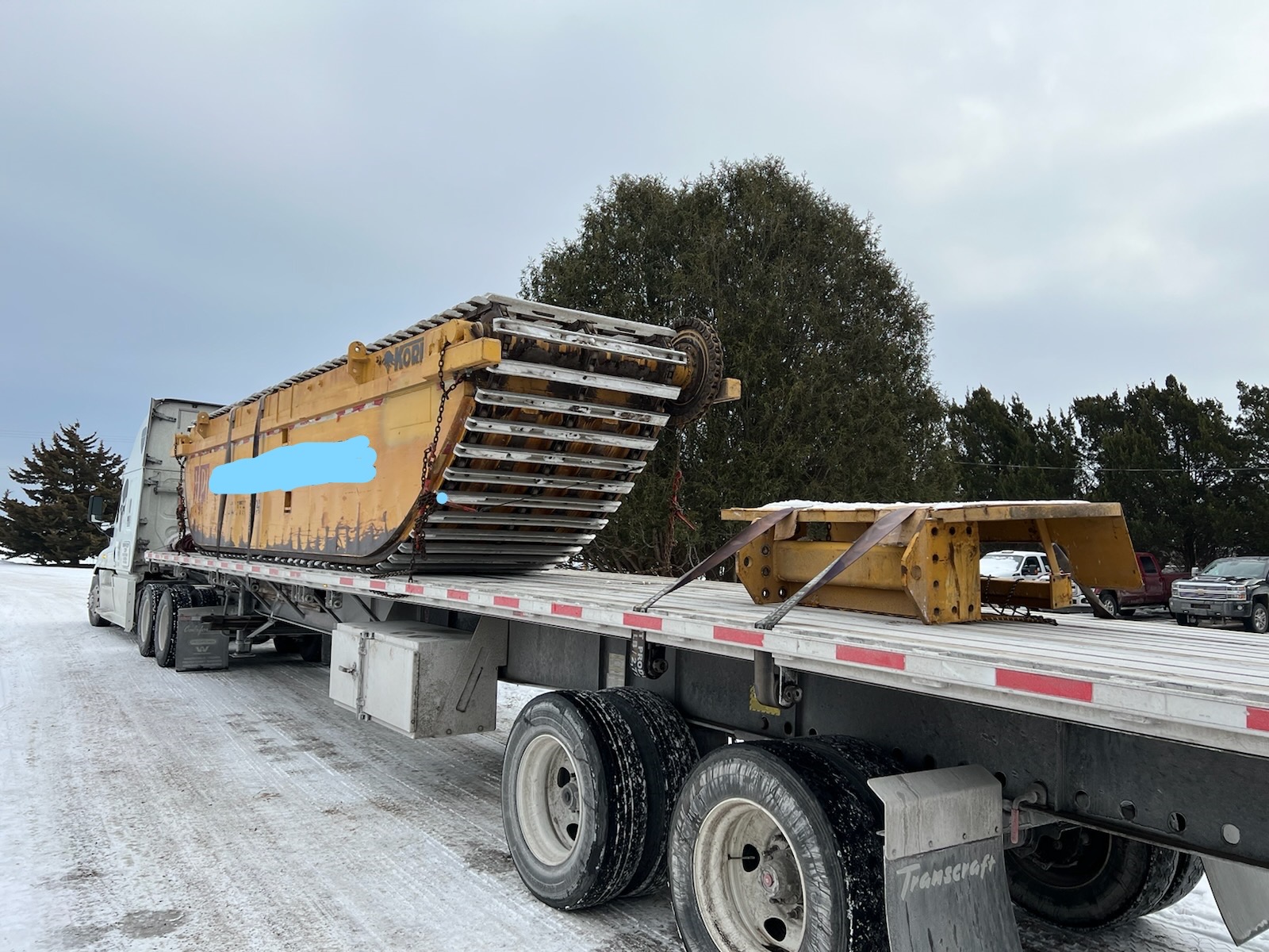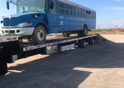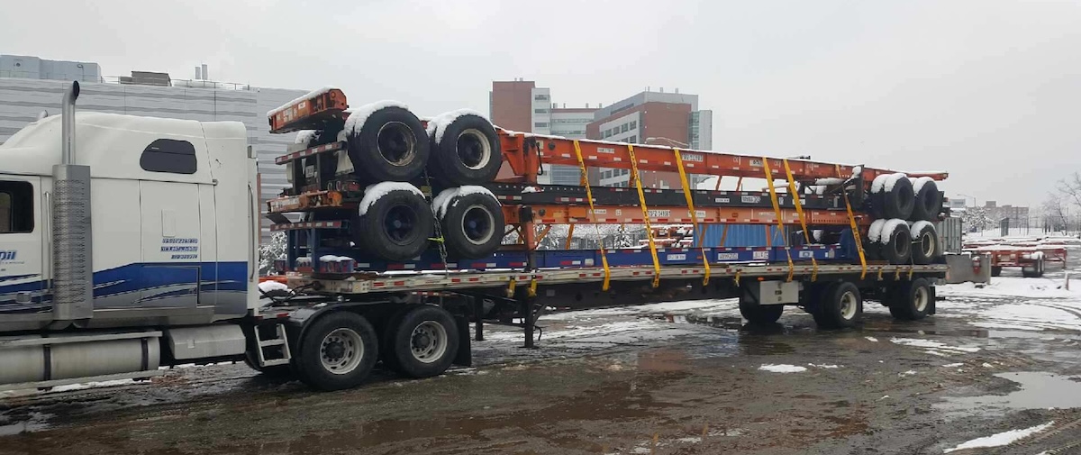 Lower deck is about 1’-2’ lower than a typical flatbed trailer to accommodate taller freight